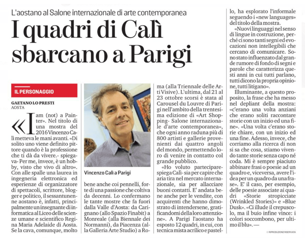 Vincenzo ha fatto mostre a Parigi, Roma, Torino, Aosta e molte alte città.
