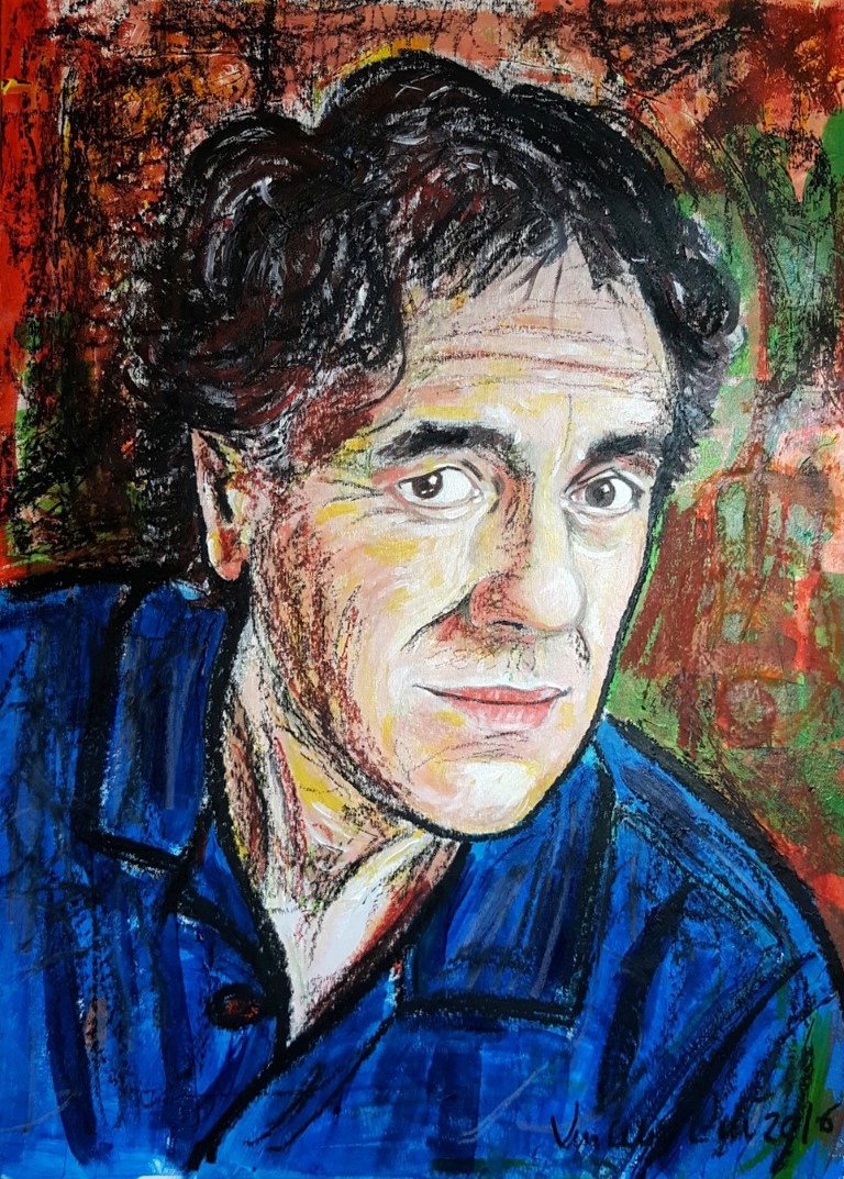 Self-Portrait listening to Jacques Brel – 2016 – Acrylic and pastels – 50×70