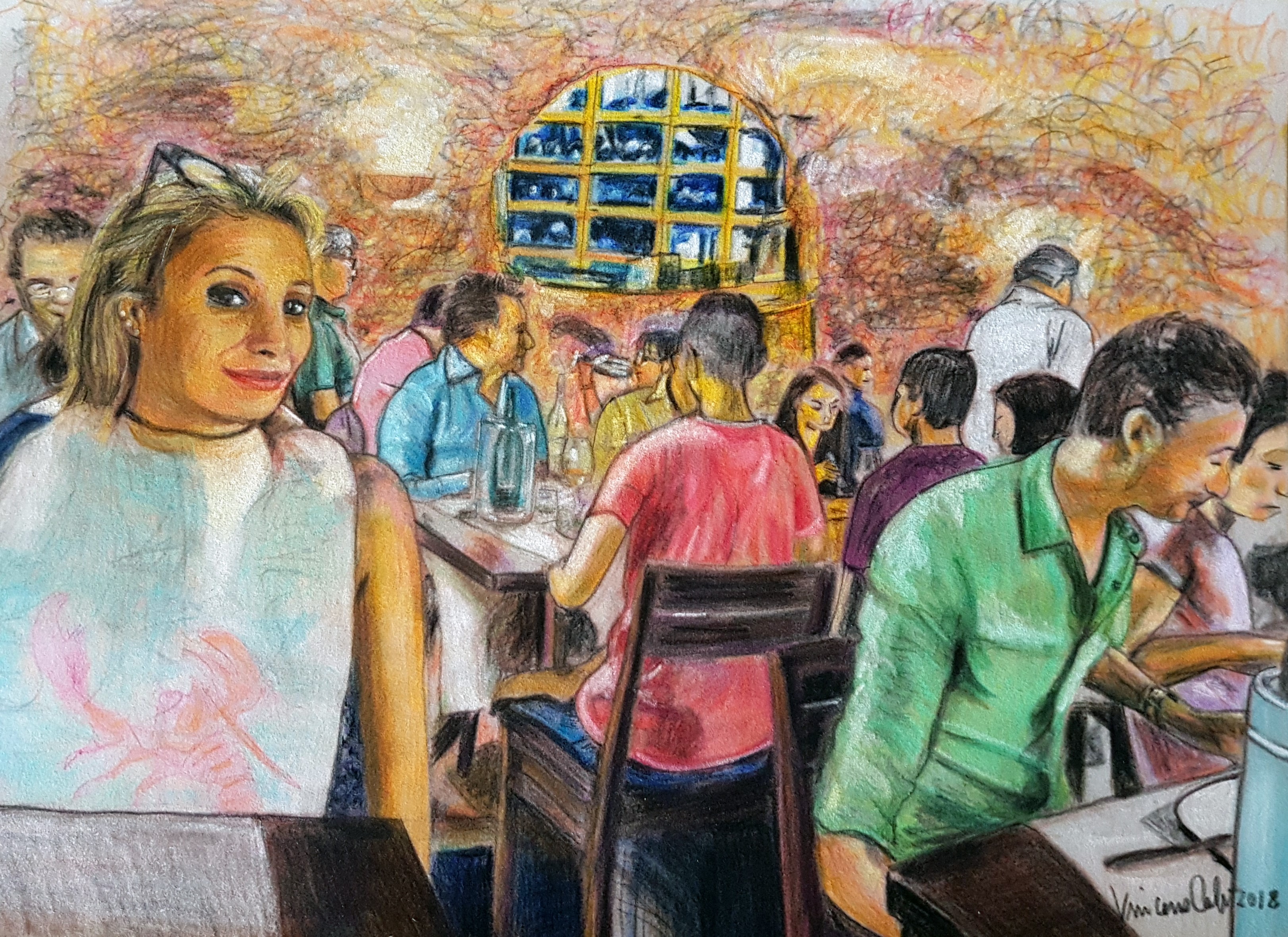 Waiting for the Wine – 2018 – Acrylic and Pastels on Paper – 50×40